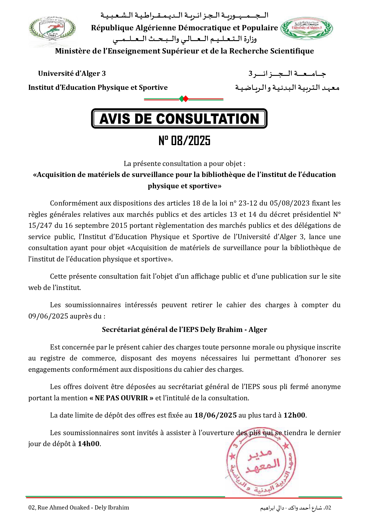الاستشارات والصفقات العمومية برسم السنة المالية 2025